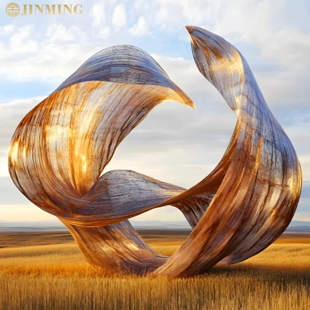 Customized Large Square Abstract Metal Craft Customized Stainless Steel Sculptures for Modern Buildings Twisted Ribbon Landmark